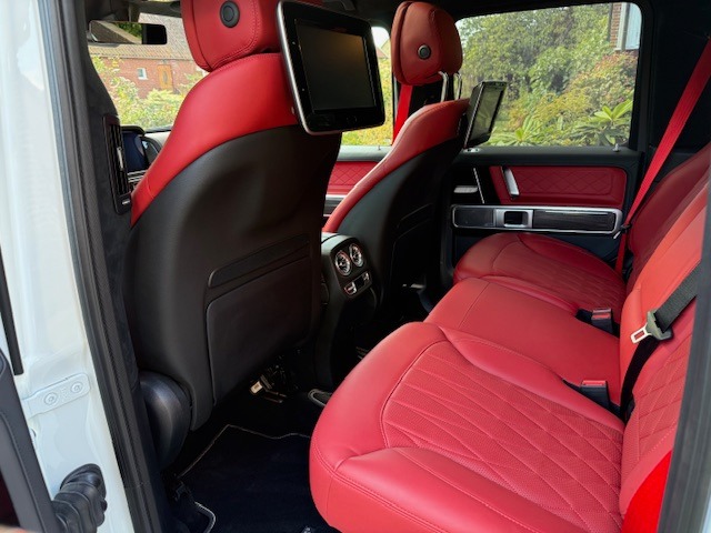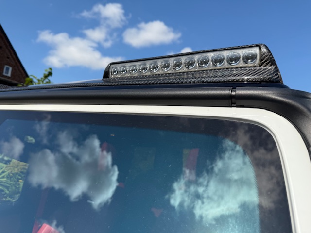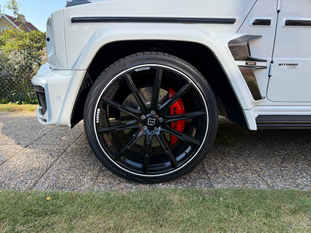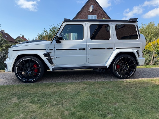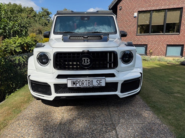 Här har vi hämtat en Brabus G800, 800 hk. Bilen har vi hämtat från en handlare i Tyskland till vår kund här i Sverige. Innan leverans har vi ombesörjt byte av bromsok (röda), bälten (röda), stjärnhimmel och service.